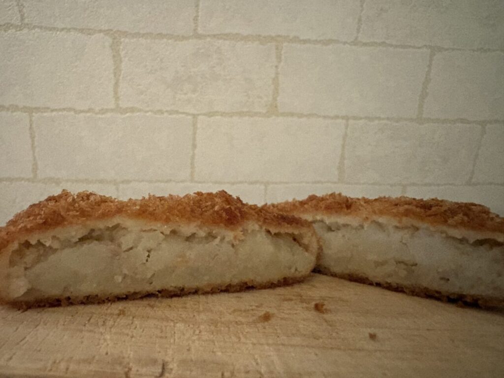 3種類あるコロッケの中でも、手作りコロッケ(税込184円)はお店で1から作っている自慢の味。テレビ番組でも取り上げられた人気の品です。