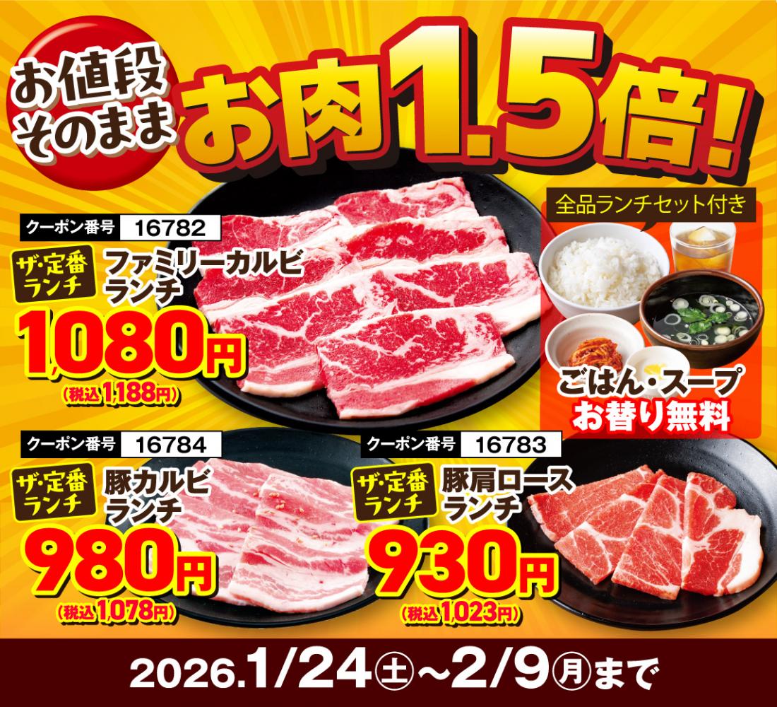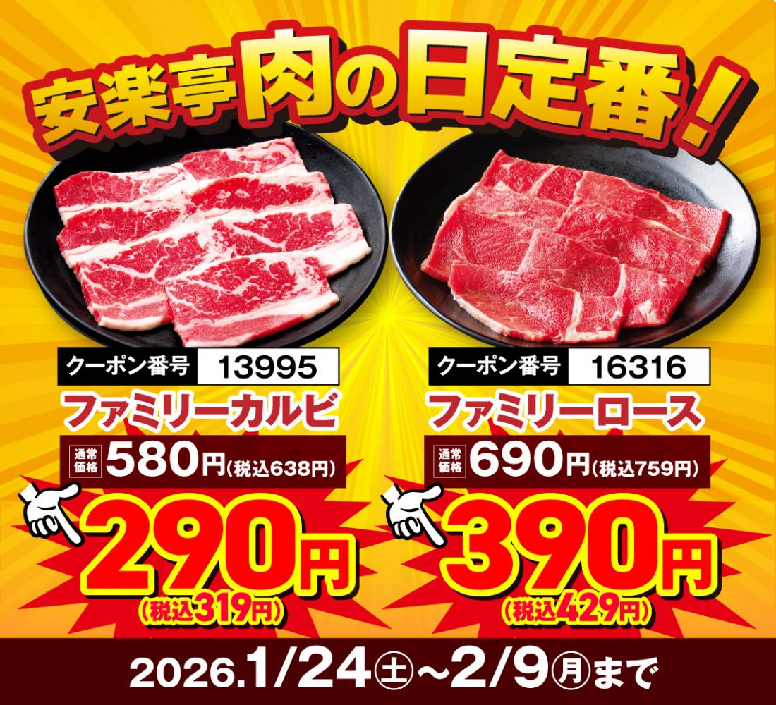 1月24日~スタート!【1月29日&2月9日は“W肉の日”】17日間の”肉の日リレーフェア”開催!【焼き肉レストラン 安楽亭 葛西店 【江戸川区エリア】】